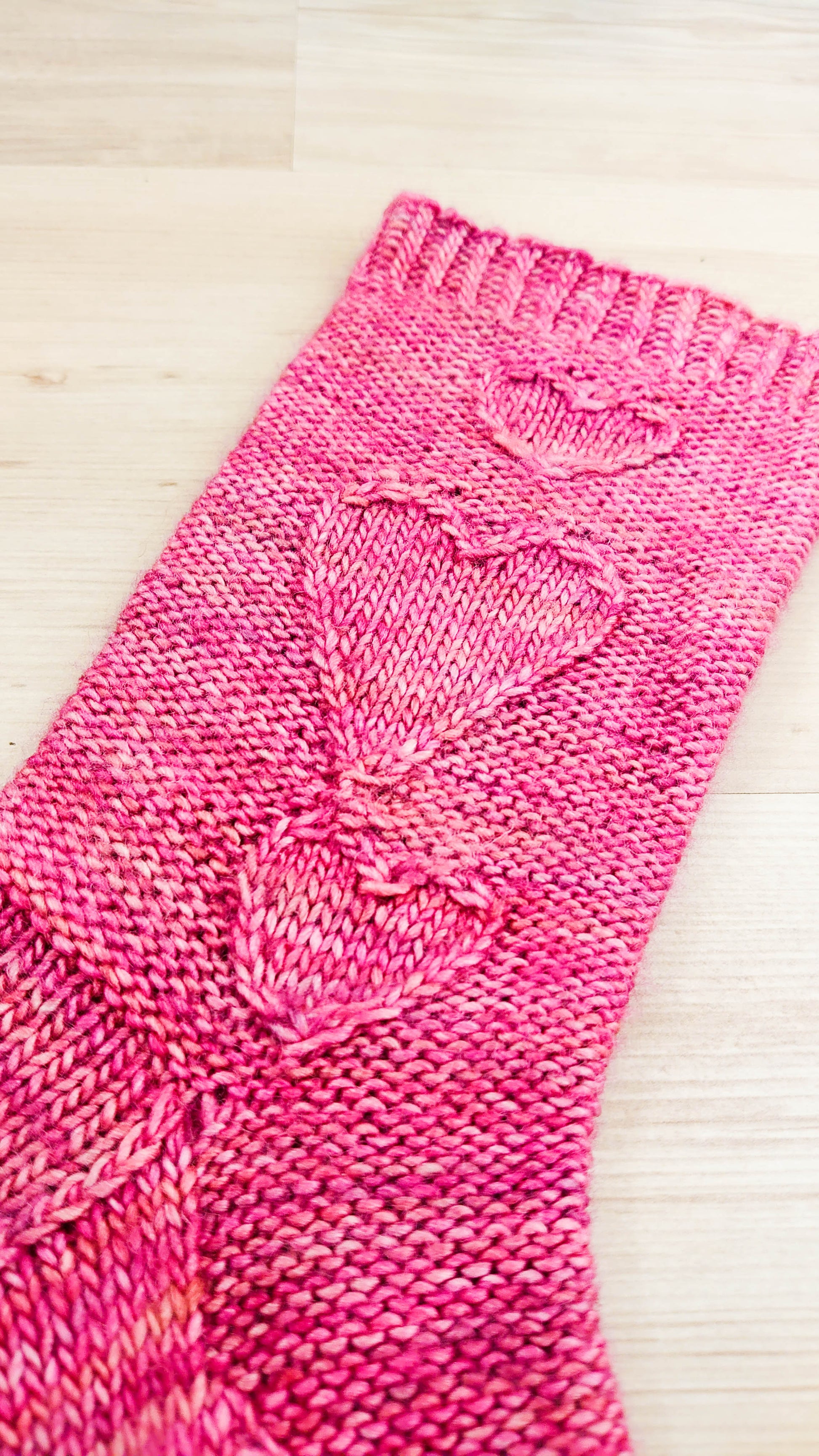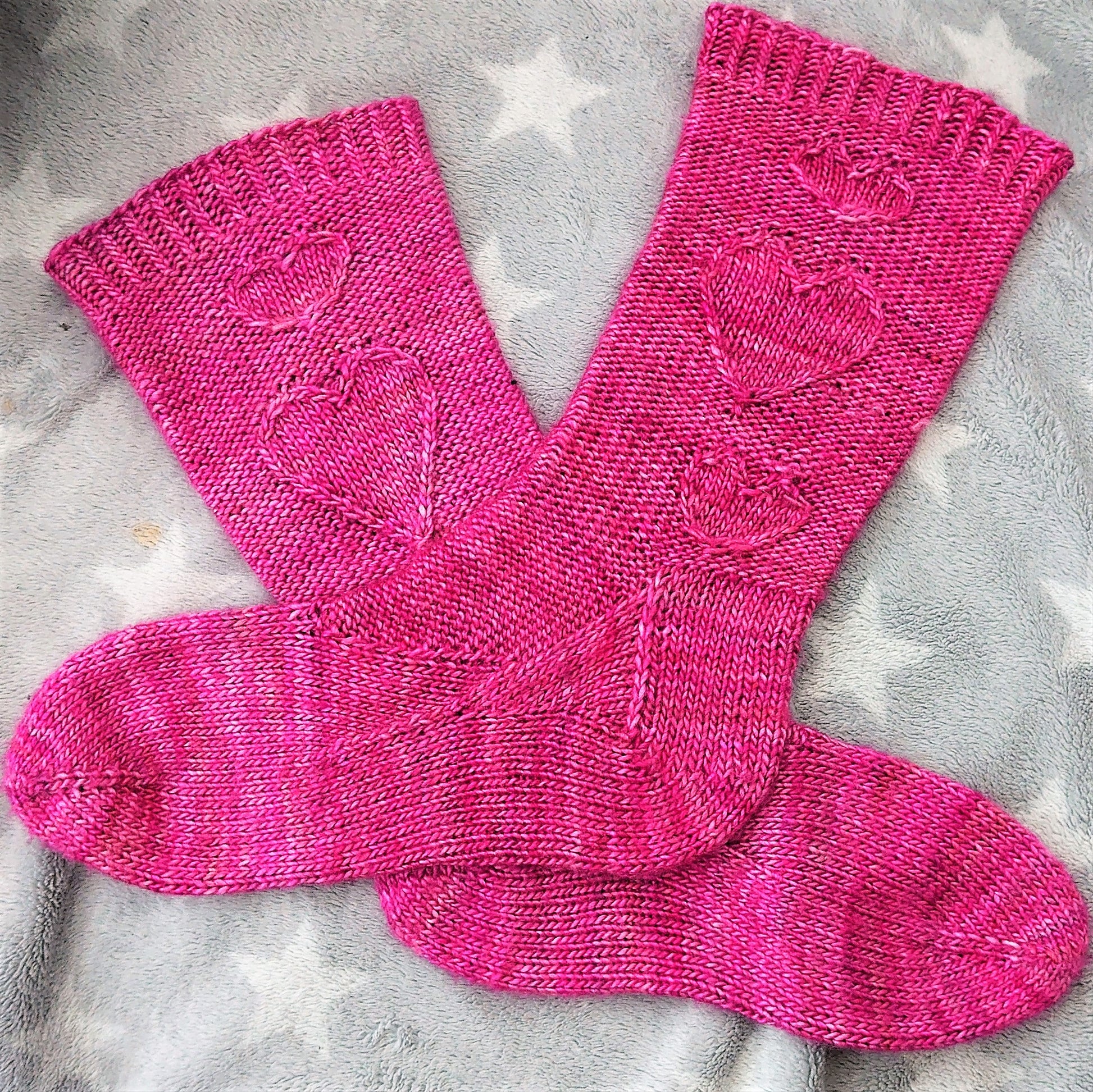 Mid-calf sock knitting pattern with cable knit hearts on the side. Worked toe-op in Malabrigo Yarns Silky Merino.