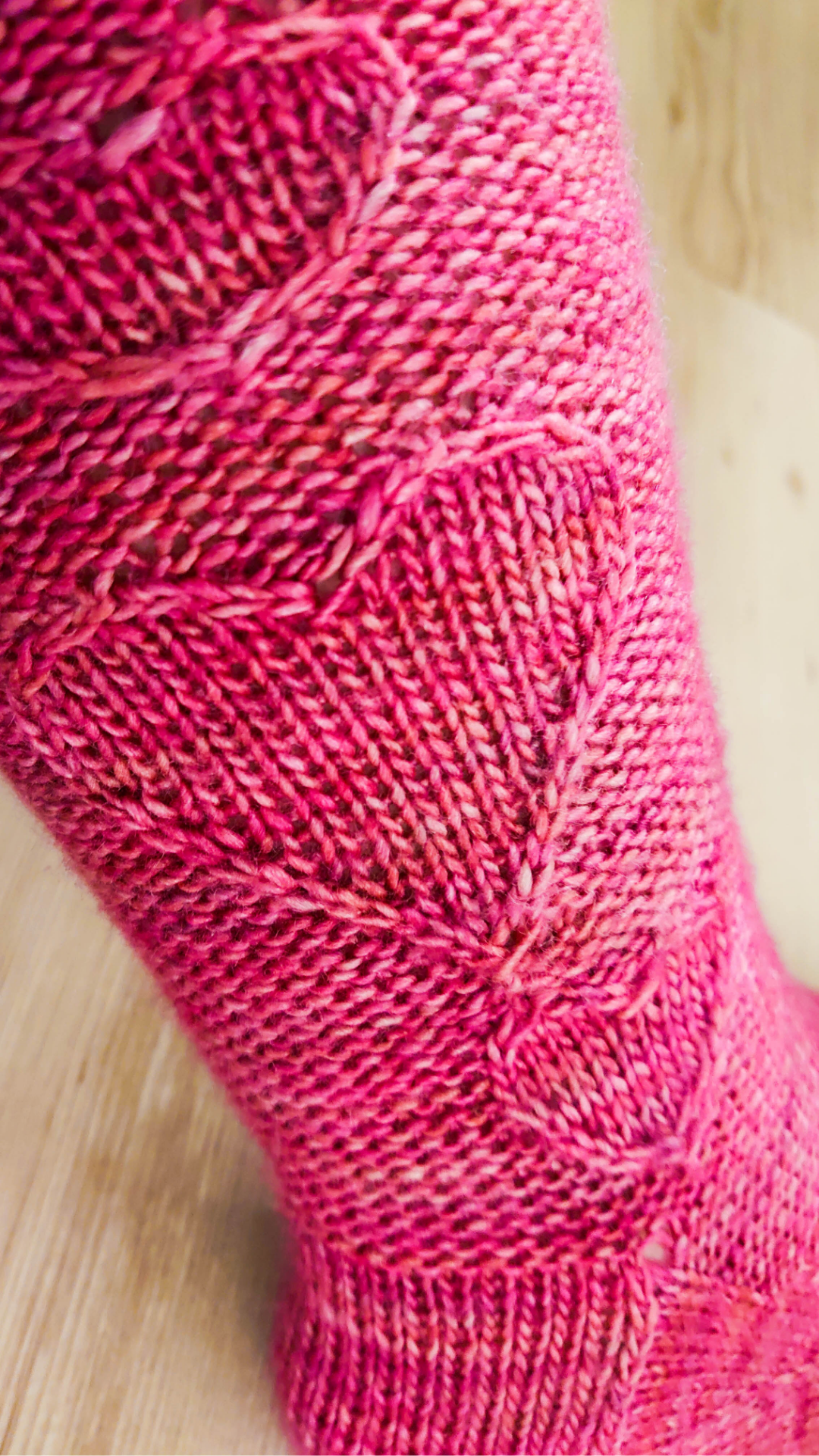 Sample is size M with a 24 cm )9.5 inch) long foot (size 39 EU) and uses 80 grams of Malabrigo Silky Merino; 137 m (150 yd’s) / 50 grams. Color #057 English Rose