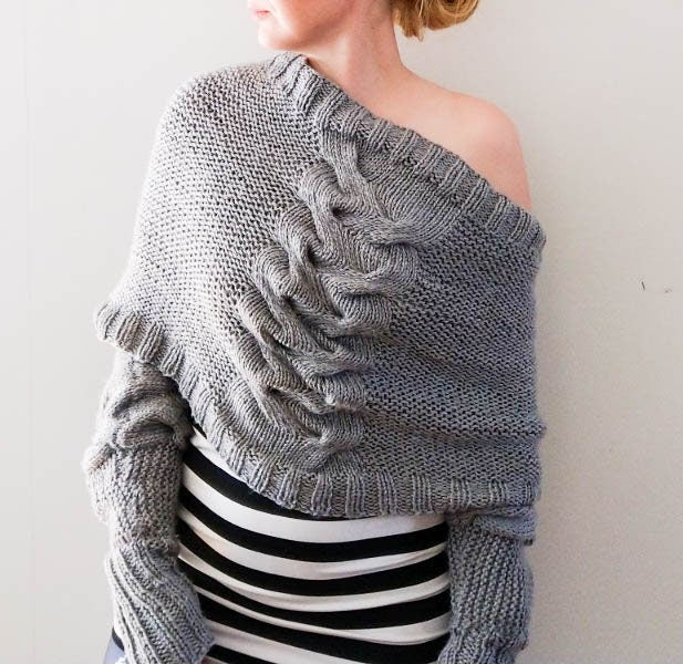 If you were to knit only one upper body cover this year, it should be this! It can be worn at least 9 different ways and only your imagination sets the limits!
