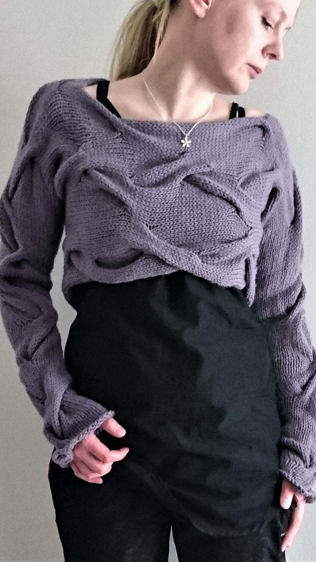 Cropped sweater knitting pattern only, not a finished product. Easy knitting project for beginners. The pattern is professionally tech edited to ensure the pattern works as it should. It is also test knitted buy knitters with different skill levels to make sure that the pattern produces the sweater as it was meant to.