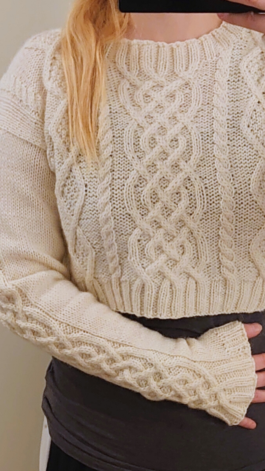 Cropped Irish Aran sweater, with unlimited sizes, starting from 32 inch bust.