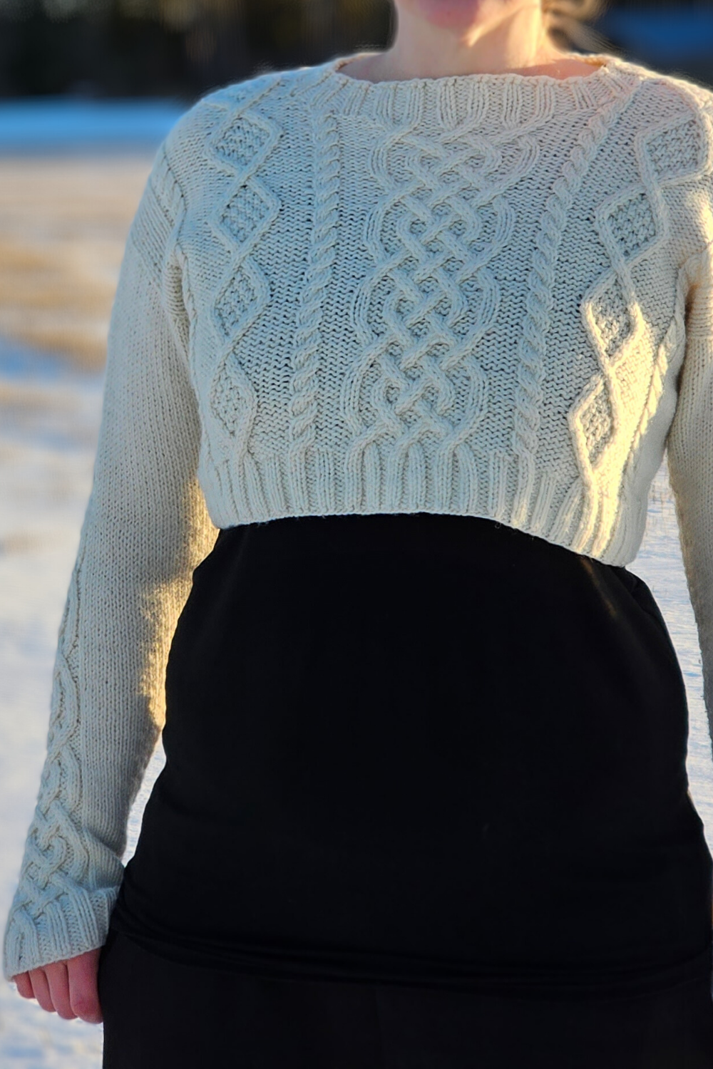 Iiris' Sweater - Cropped Aran Cable Sweater Knitting Pattern