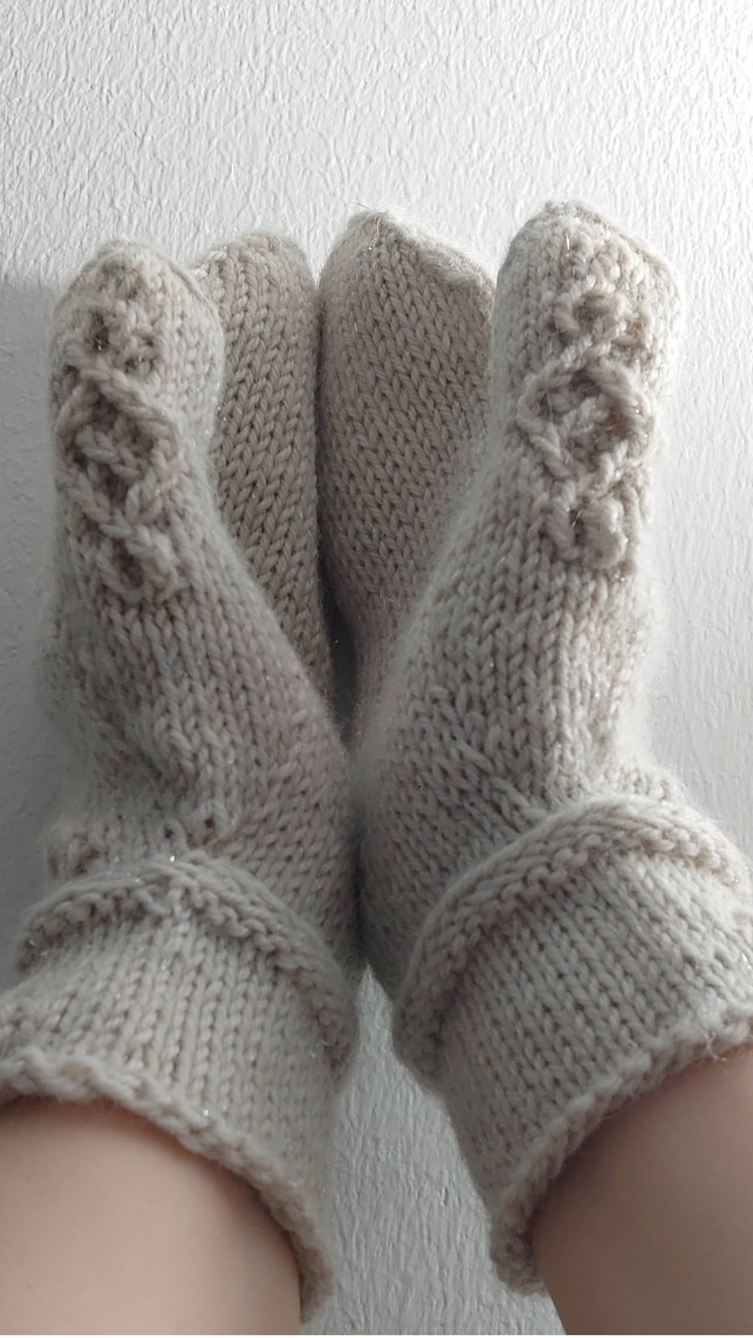 22 sts and 31 rows = 10 cm (4 inch) in St st worked in rnd, after blocking.