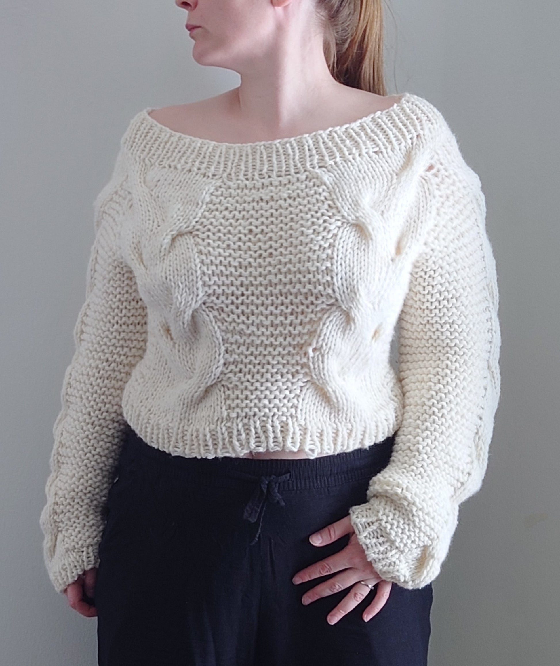 Liquid Shadows - Cropped Chunky Cable Sweater Knitting Pattern