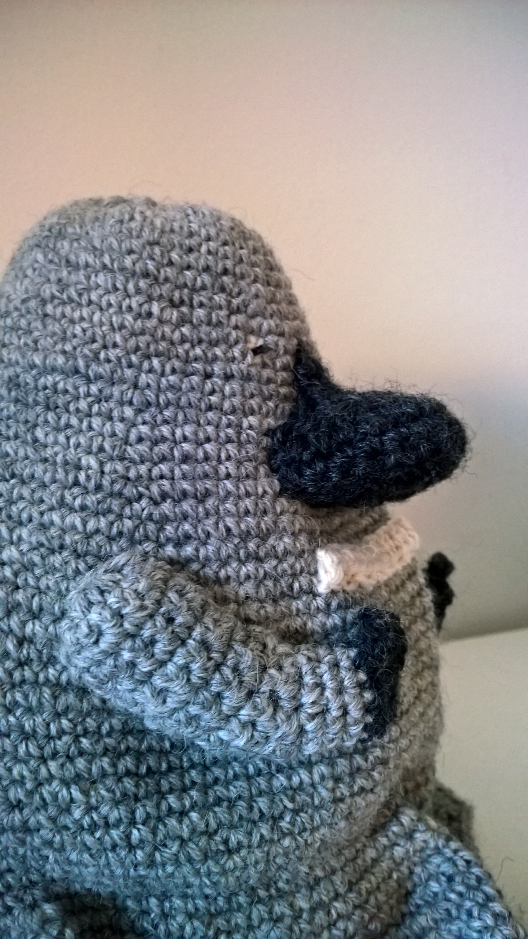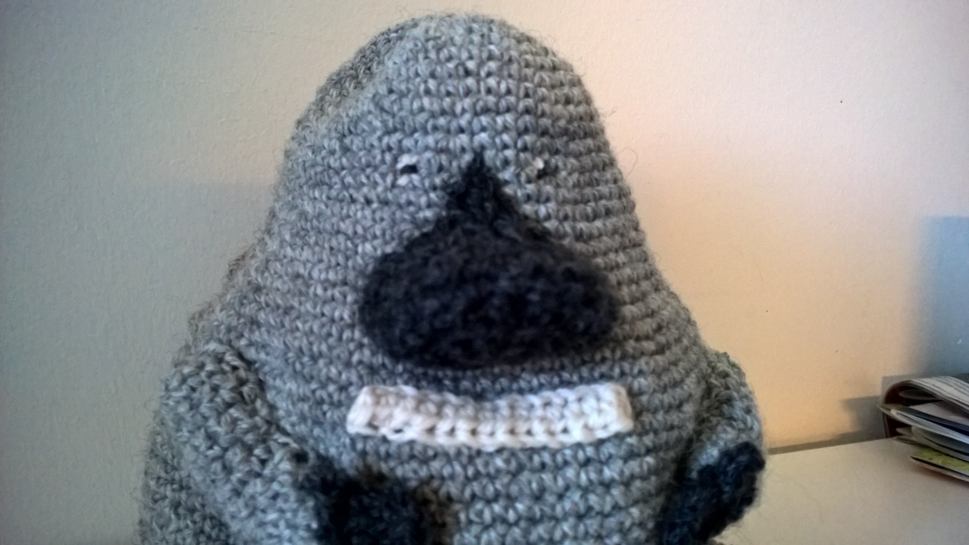 Pää, niska ja ruumis ja helma tehdään yhtenä palana, eli lanka katkaistaan vasta kun helma on tehty.