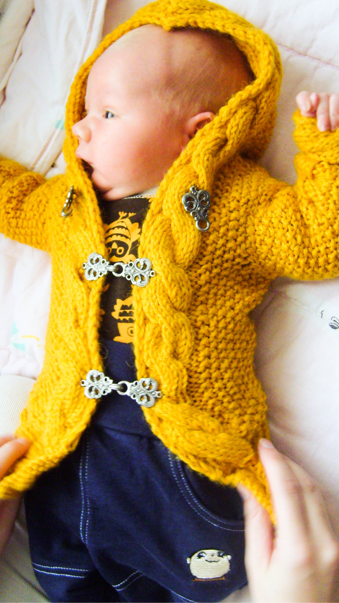 Tellervo - Cabled Baby Hooded Cardigan Knitting Pattern