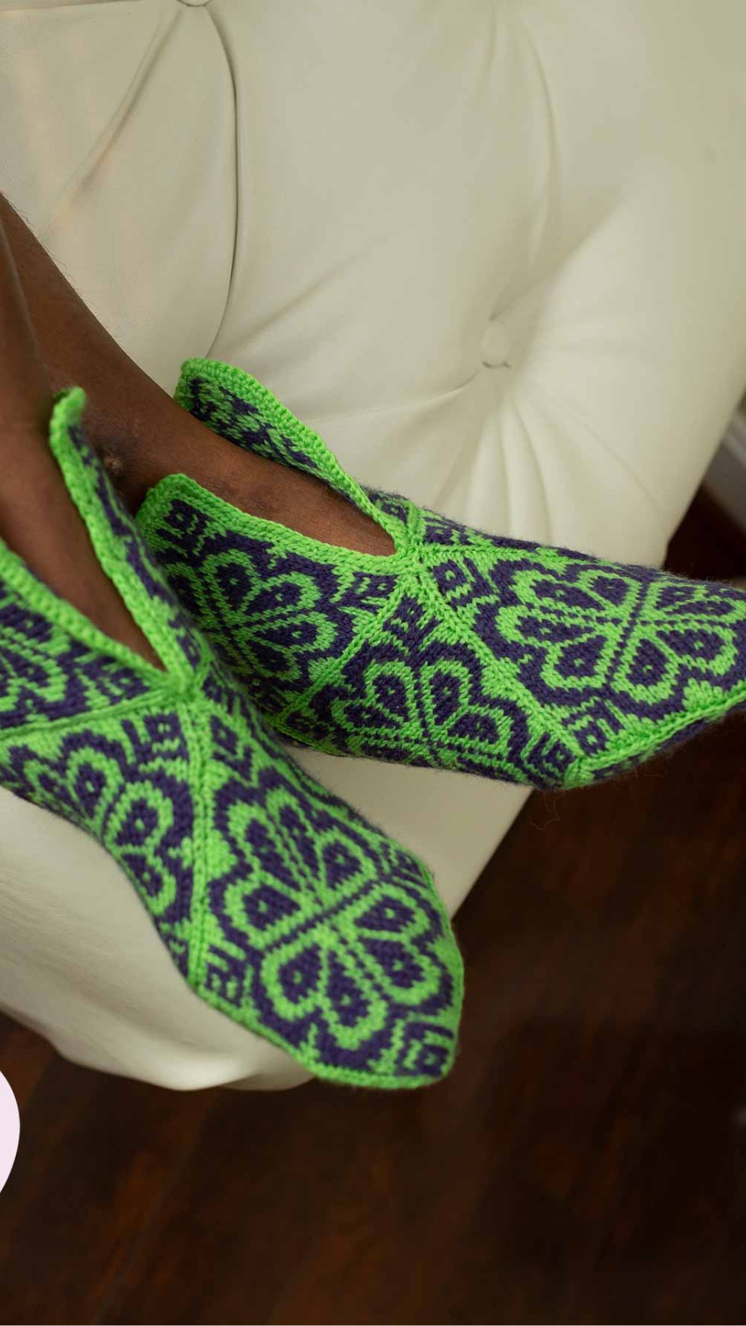 Tile Slippers - Floral Stranded Colorwork Socks Knitting Pattern