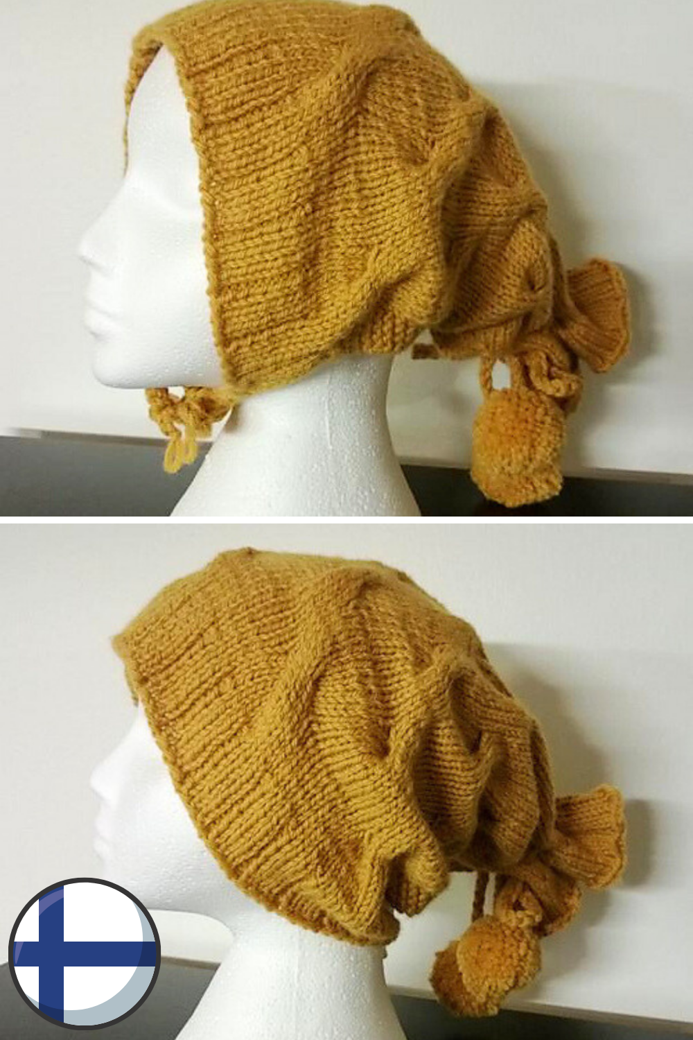 Neulo itsellesi tämä 3-in-1 palmikko pipo! Alareunan voi taittaa kaksikertaiseksi tai narut solmia niskan taakse tai leuan alle. Pipoa voi käyttää myls kaulurina!