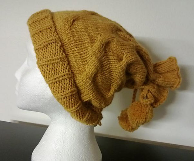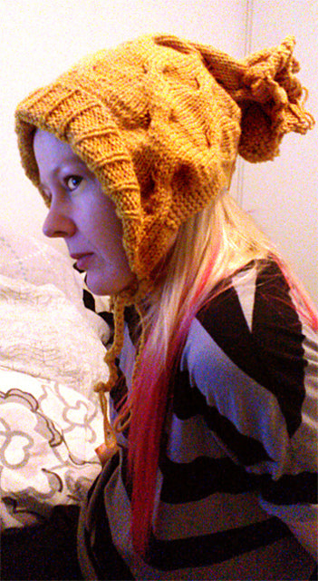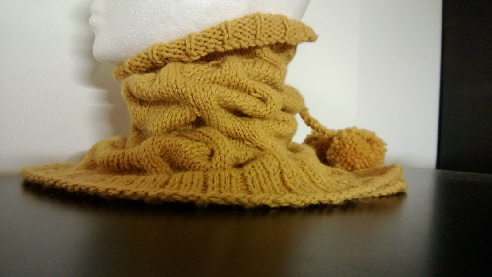 Twisted - Palmikkopipo ja kauluri tupsuilla neuleohje